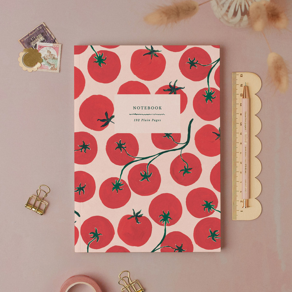 The bold red fruits and their deep green vines were originally handpainted in gouache paints, before being printed onto textured, high quality card stock that gives these colourful notebooks a luxury feel. The perfect-bound cover is filled with 192 plain pages, ready to capture your imagination.